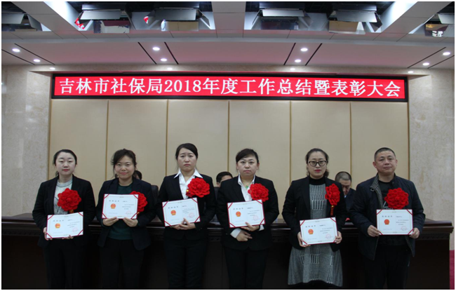 吉林市社保局副局长尹文海宣读了《关于表彰2018年度先进集体和优秀个人的决定》,对于庆元等27名优秀个人、叶红等8名三等功个人、于航等48名绩效考核突出个人、王丽艳等7名优秀共产党员和优秀党务工作者,第七党支部等先进基层党组织予以表彰,并对车曙明同志救落水老人突出事迹进行表彰。