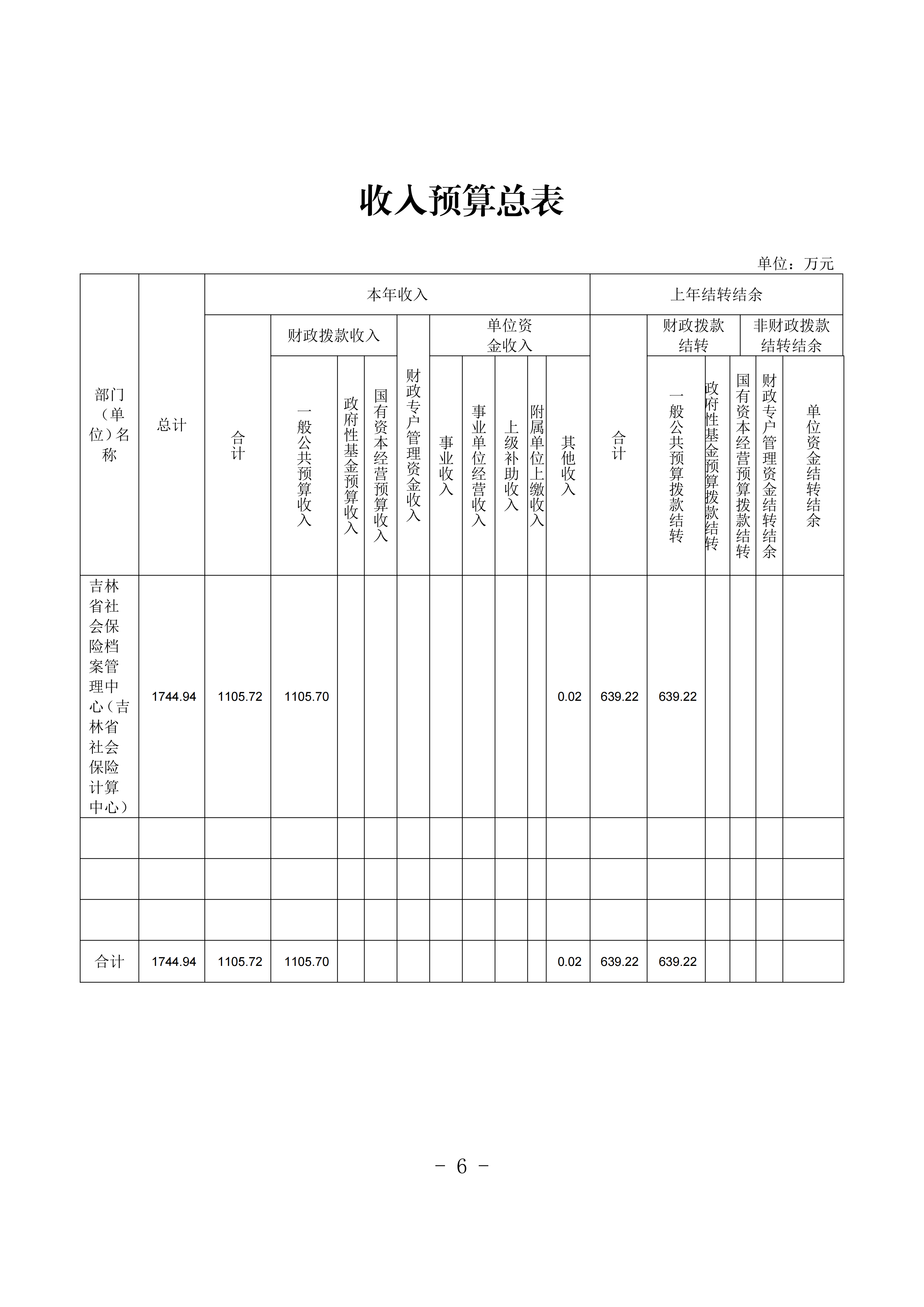 2026年度吉林省社会保险档案管理中心(吉林省社会保险计算中心)单位预算
