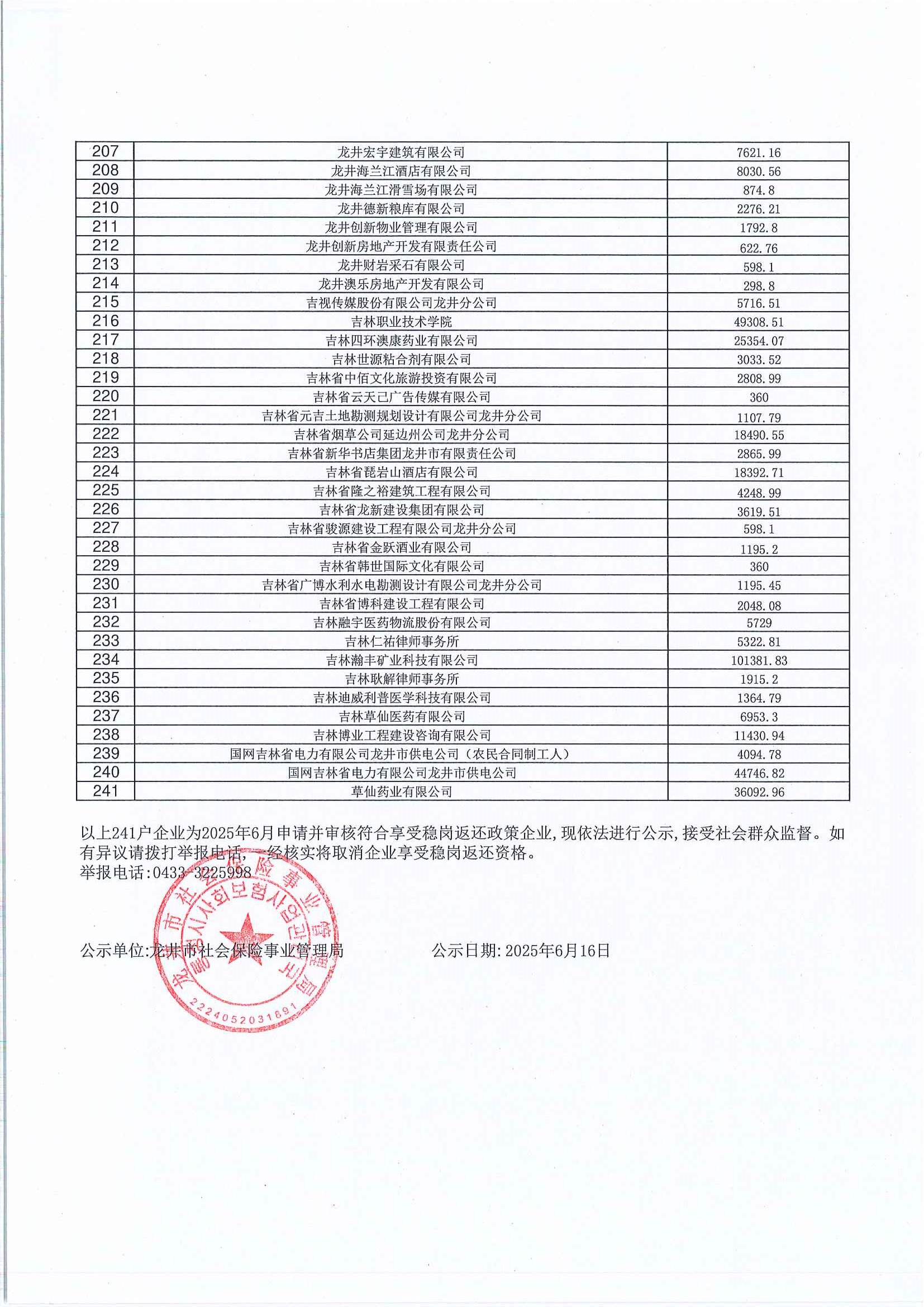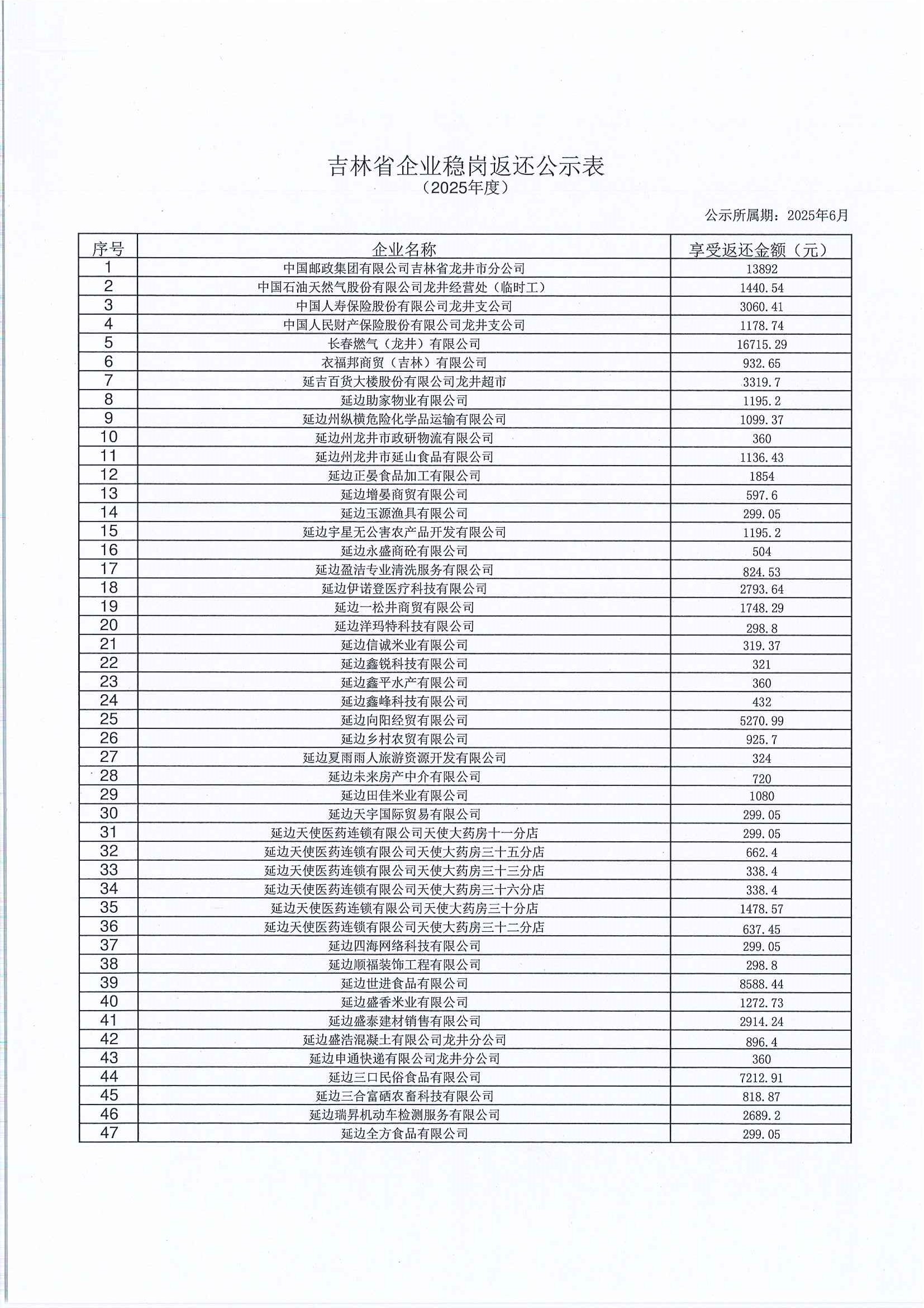 2025年度吉林省企业稳岗返还公示(第一批)