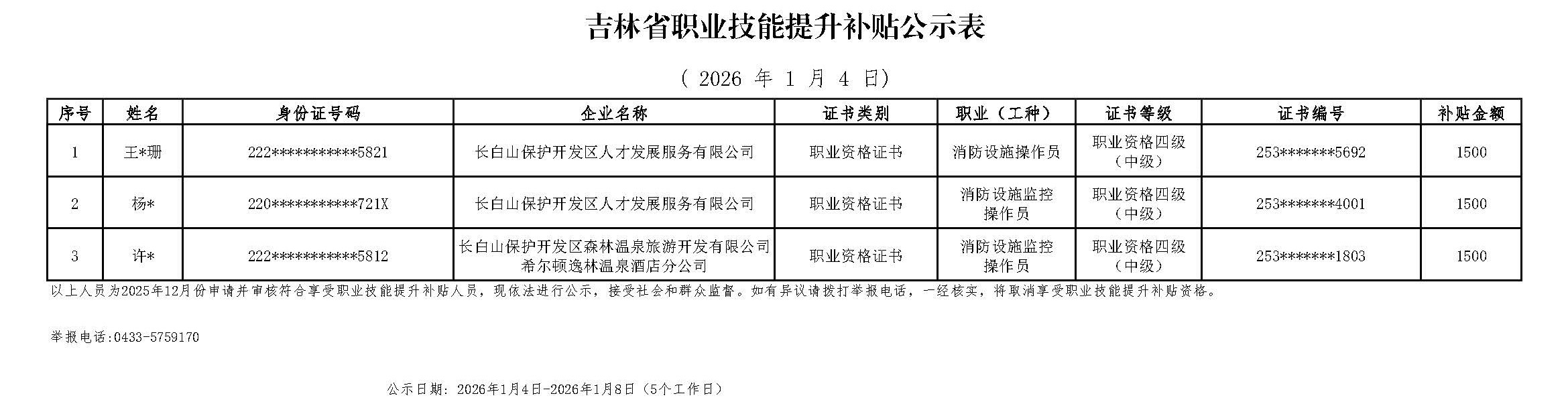 吉林省职业技能提升补贴公示表