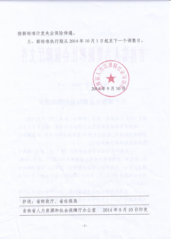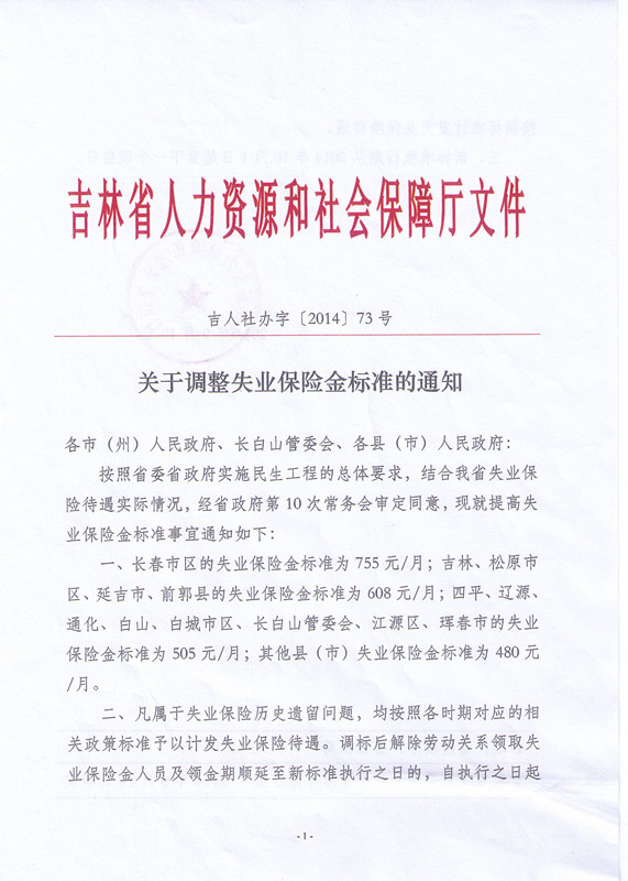 关于调整失业保险金标准的通知